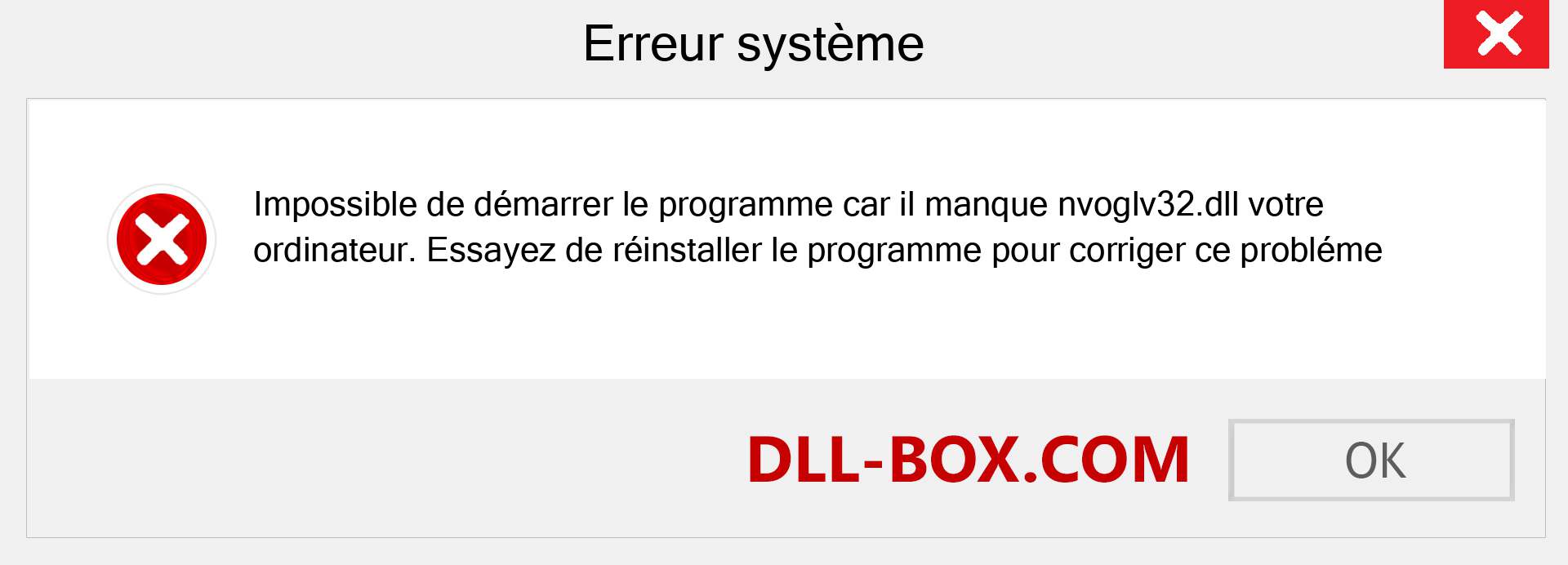 1. Le programme ne peut pas démarrer car nvoglv32.dll est absent de votre ordinateur. Essayez de réinstaller le programme pour résoudre ce problème.